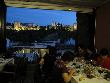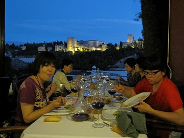 夕食 アルハンブラ宮殿の夜景を観ながらの夕食は如何でしょう。
