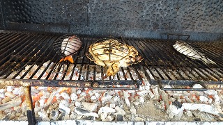 漁村・ゲタリアの炭火焼きのヒラメ 、