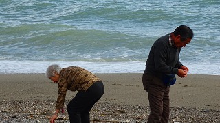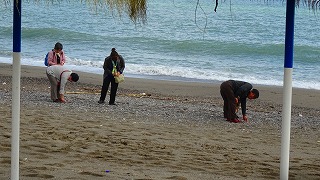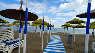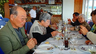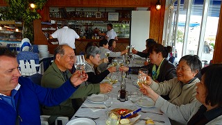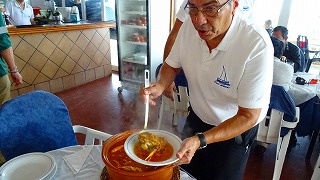 昼食 トレモリーノスの、砂浜のレストランにて、