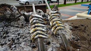 イワシの蒔き炭焼きです。