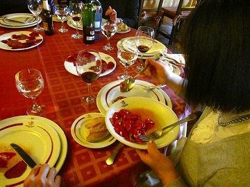 地酒の赤ワインで「サル~!」(乾杯!)
