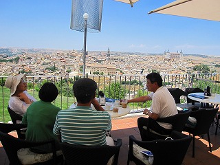 タクシーにて、トレドの「パラドール」のテラスで、