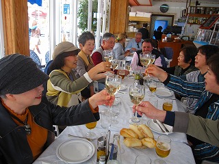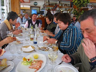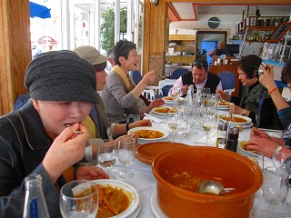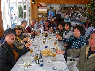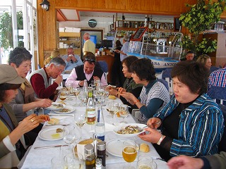 昼食 トレモリーノスの、 砂浜のレストランにて、