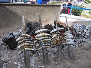イワシの蒔き炭焼きです。