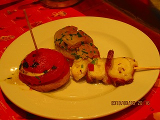 夕食は、かるく「ピンチョス」をつまみました。
