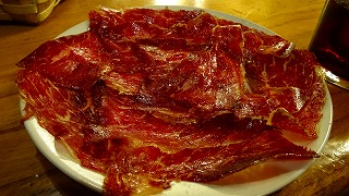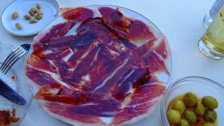 昼食 パラドールのレストラン、または、テラスで、イベリコ生ハムなど。