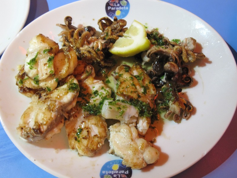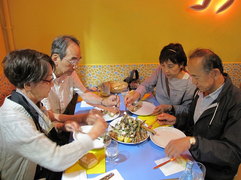 私が案内しますレストランは、現地でも有名な『老舗レストラン』が多いのですが、やはり、食材の仕入れが「新鮮」で、最上級の「オリーブオイル」を使い、しっかりした『シェフ』が居るからです。昔から付き合いのある店ですので、一皿を4人で小皿に分けて(値段は4分の1)食べて頂けます。最近では、レストランで、二分の一の「メニュー」を用意してる店が増えました。 通常の一皿の半分の量のメーニューを、何皿か注文して、いろんな『名物料理』を、