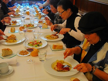 『スペイン刺繍の旅』に、来られた時、「フリー」の夕食の手配を頼まれ、ある有名なレストランで、ご希望の料理を、4人に一皿を注文をして、いろんな名物料理を味わって頂き、レストランのメニューに記載された料金を支払って頂きました。この時、現地の手配会社(オペレーター)の支店長と、日本の大手の旅行会社の課長さん(添乗員)がレストランに挨拶に来られ、